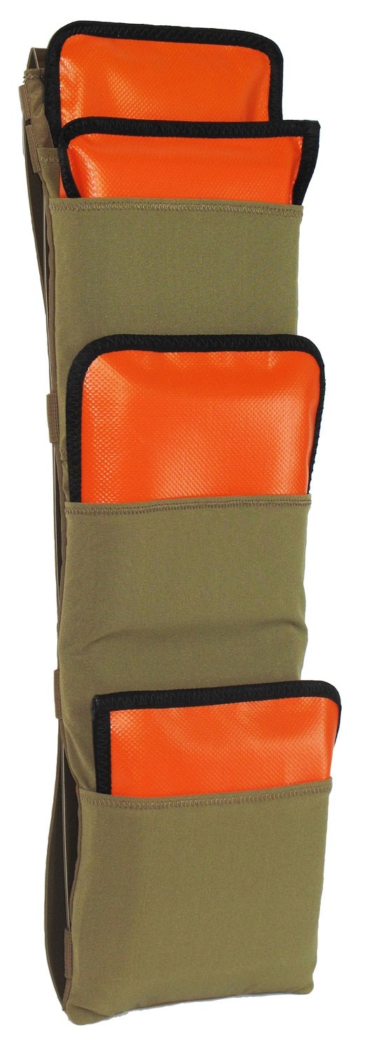 Picture a low profile filing system for the OSS Restraint pieces that gets secured between two Lateral Bags and still leaves room for a litter or other gear on top. Restraint Kit pictured with Flatbed and optional Lateral Pockets not included.